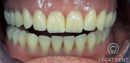 Problem pacientov, ki so izgubili zobe zaradi parodontalne bolezni, je v tem, da nimajo dobrih anatomskih pogojev za nošenje totalne proteze, saj jim je zaradi nezdravljene bolezni nepretrgoma topila kost in kostne strukture, ki so pomembne za statiko proteze. Naš gospod je imel zelo slabe pogoje za protezo in je z njo težko jedel, zato smo se odločili za izvedbo proteze na 2 implantatih v spodnji in 4 implantatih v zgornji čeljusti, ki dodatno sidrajo proteze in omogočajo njihovo stabilnost in udobno žvečenje.